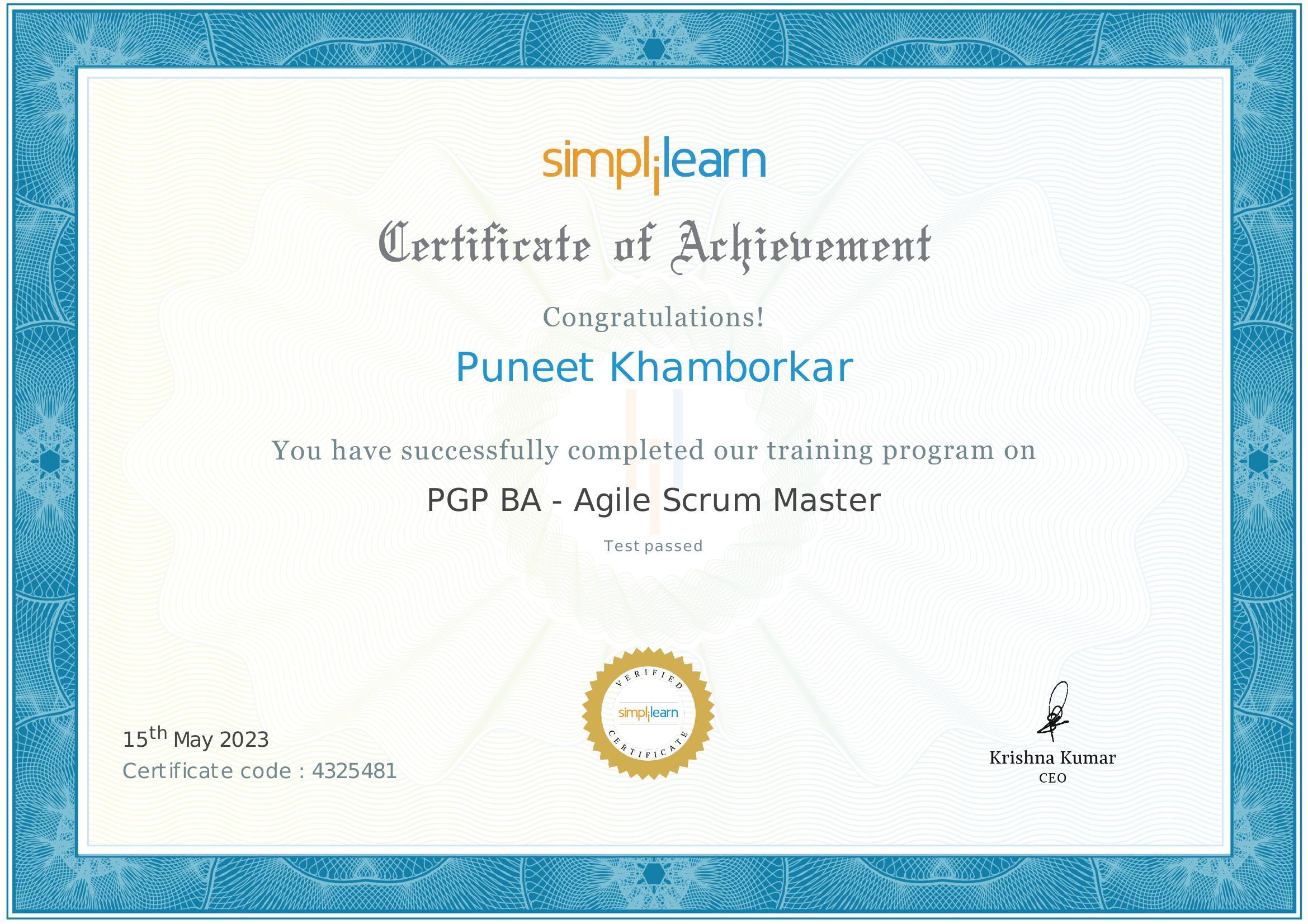 PGP BA Agile Scrum Master#
